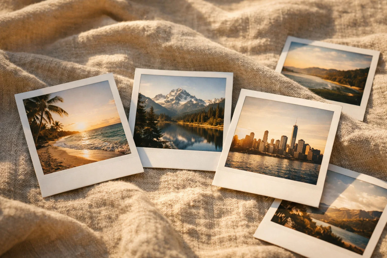 Каждая страна — одна фотография. Подписать дату, место и короткую фразу. Через время получится живая галерея воспоминаний, которую не нужно листать в телефоне.