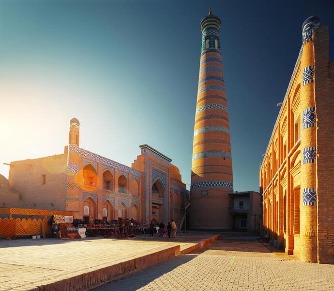- Минарет Ислам-Ходжа – высочайший исторический минарет в республике и второй по высоте минарет в Средней Азии, а на 45 метровой высоте расположилась смотровая площадка