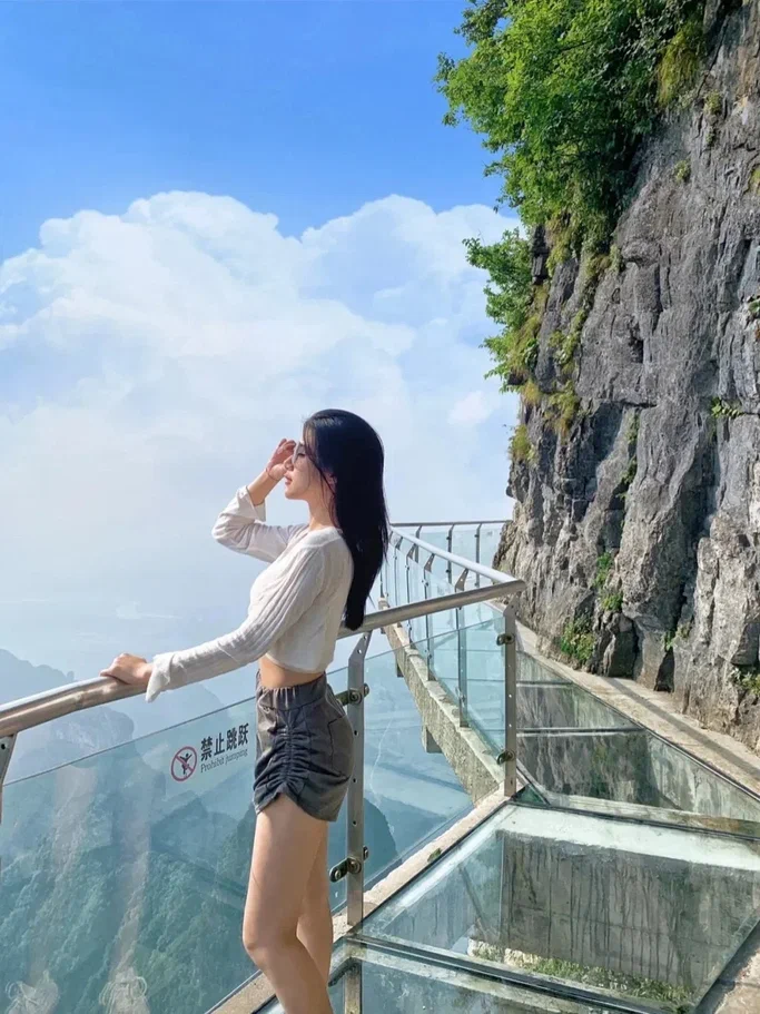 - Во второй половине дня, посещение Национального лесного парка Тяньмэньшань: подъём на фуникулёре Тяньмэньшань, посещение пещеры Тяньмэньдун, прогулка по стеклянной тропе, спуск на автоматическом эскалаторе и обратный путь на канатной дороге.