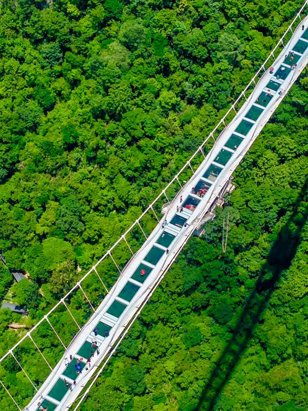 - Во второй половине дня посещение Национального лесного парка Тяньмэньшань: подъём на фуникулёре Тяньмэньшань, посещение пещеры Тяньмэньдун, прогулка по стеклянной тропе, спуск на автоматическом эскалаторе и обратный путь на канатной дороге.